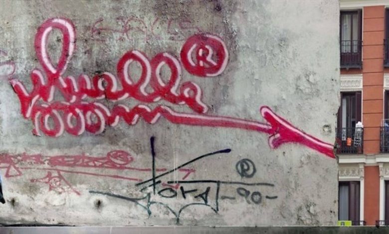 La característica rúbrica de Muelle, su alias artístico sobre una espiral acabada en flecha y una ‘R’ en el interior de un círculo, marcó las primeras generaciones de grafiteros de Madrid hasta ser considerado una leyenda del arte urbano y el pionero en España de los grafitis.