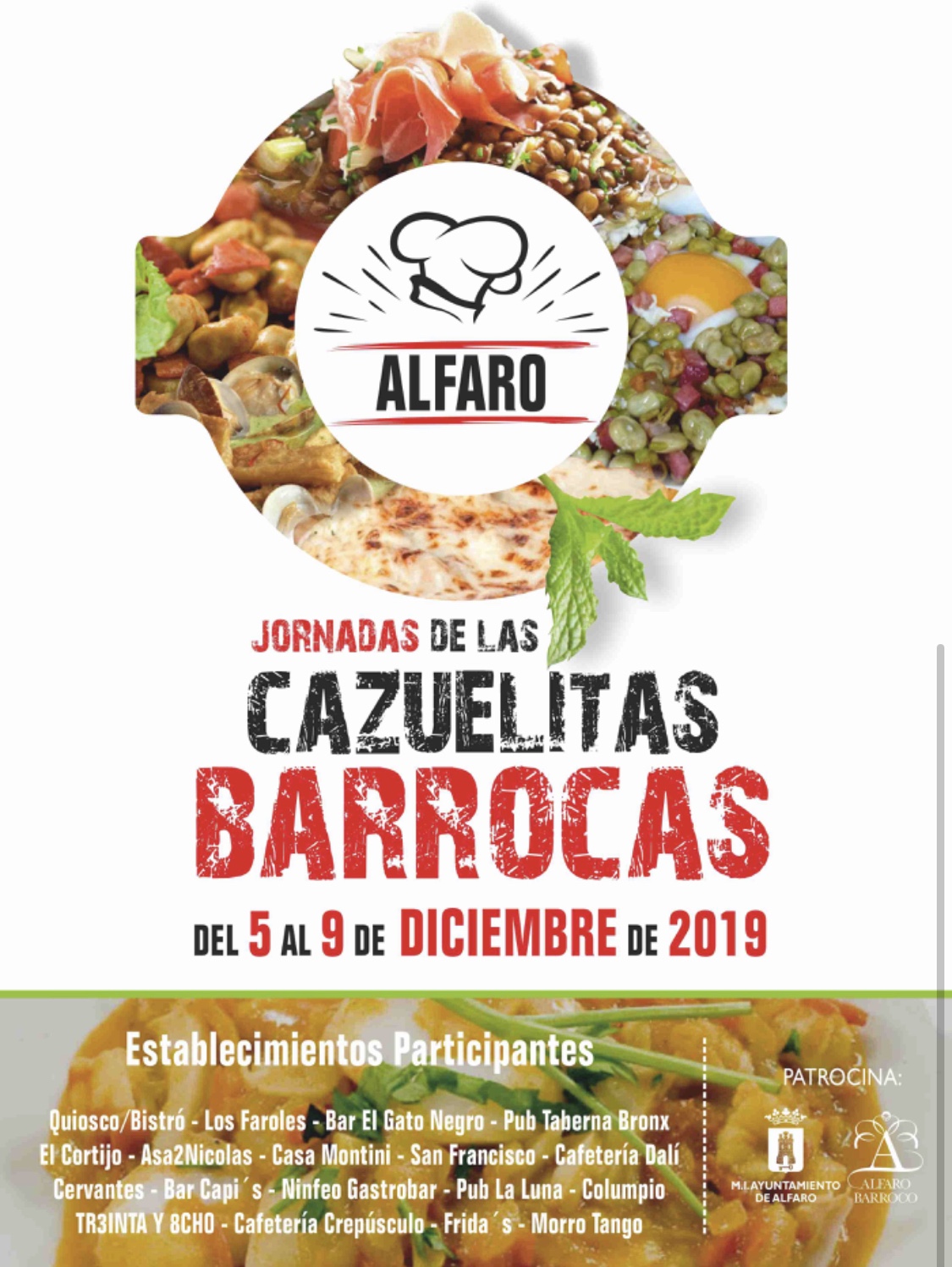 El Ayuntamiento junto a los establecimientos hosteleros de Alfaro organizan del 5 al 9 de diciembre unas nuevas jornadas de las Cazuelitas Barrocas.