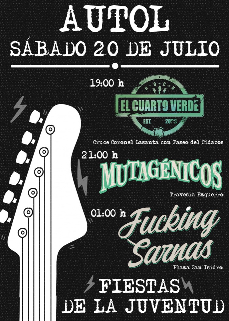 01:00 horas, Concierto con el grupo “Fucking Sarnas” en Plaza San Isidro.