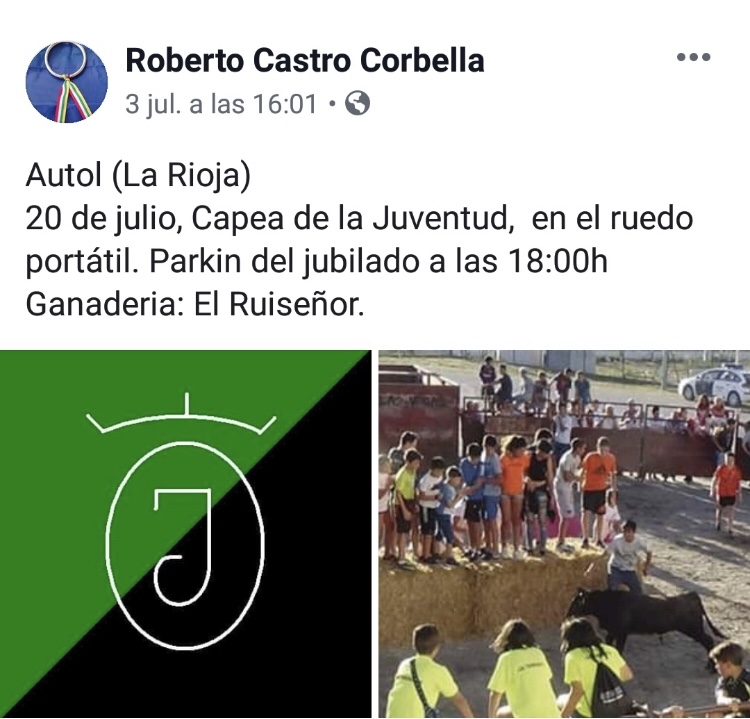 18:00 horas, Suelta de vaquillas para los más atrevidos. Lugar: Parking junto al Centro de Participación Activa de