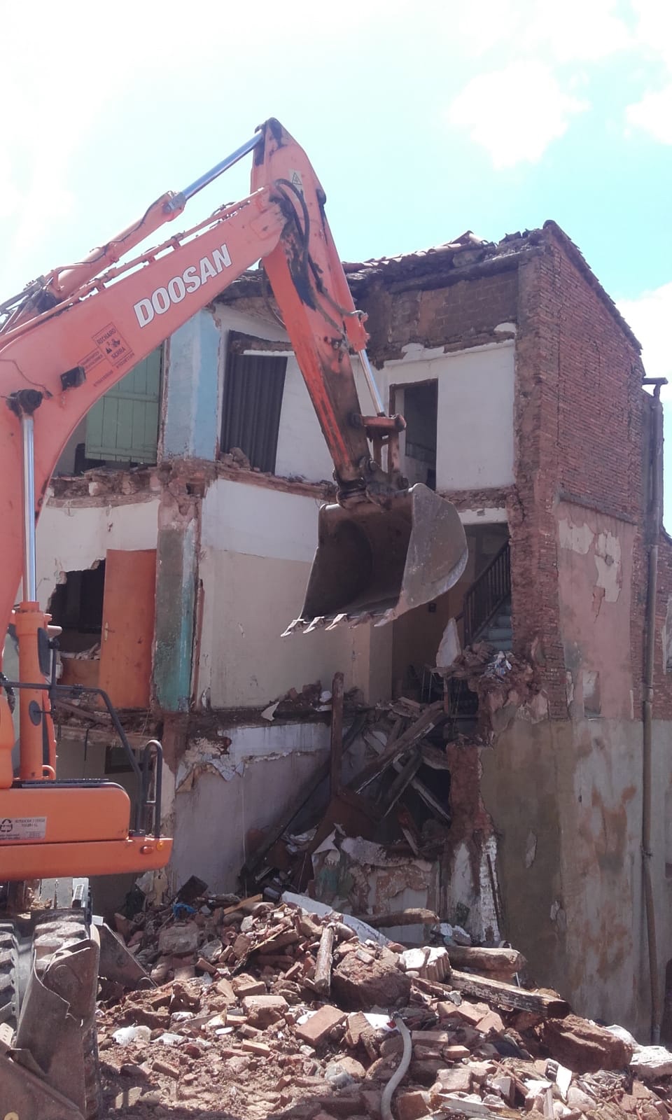 Aunque el Ayuntamiento anunció ayer que la demolición se iniciaría a las 8 de la mañana del lunes; el derribo se ha iniciado alrededor de las 8:30 de hoy. La actuación se está llevando a cabo por J. Aldama Martínez, como director de obra y Transportes y excavaciones Brindo SL como ejecutor de esta.
