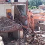 Esta mañana, a las 8:30, ha tenido lugar el derribo de los edificios de la Cuesta de la Catedral 24-26.