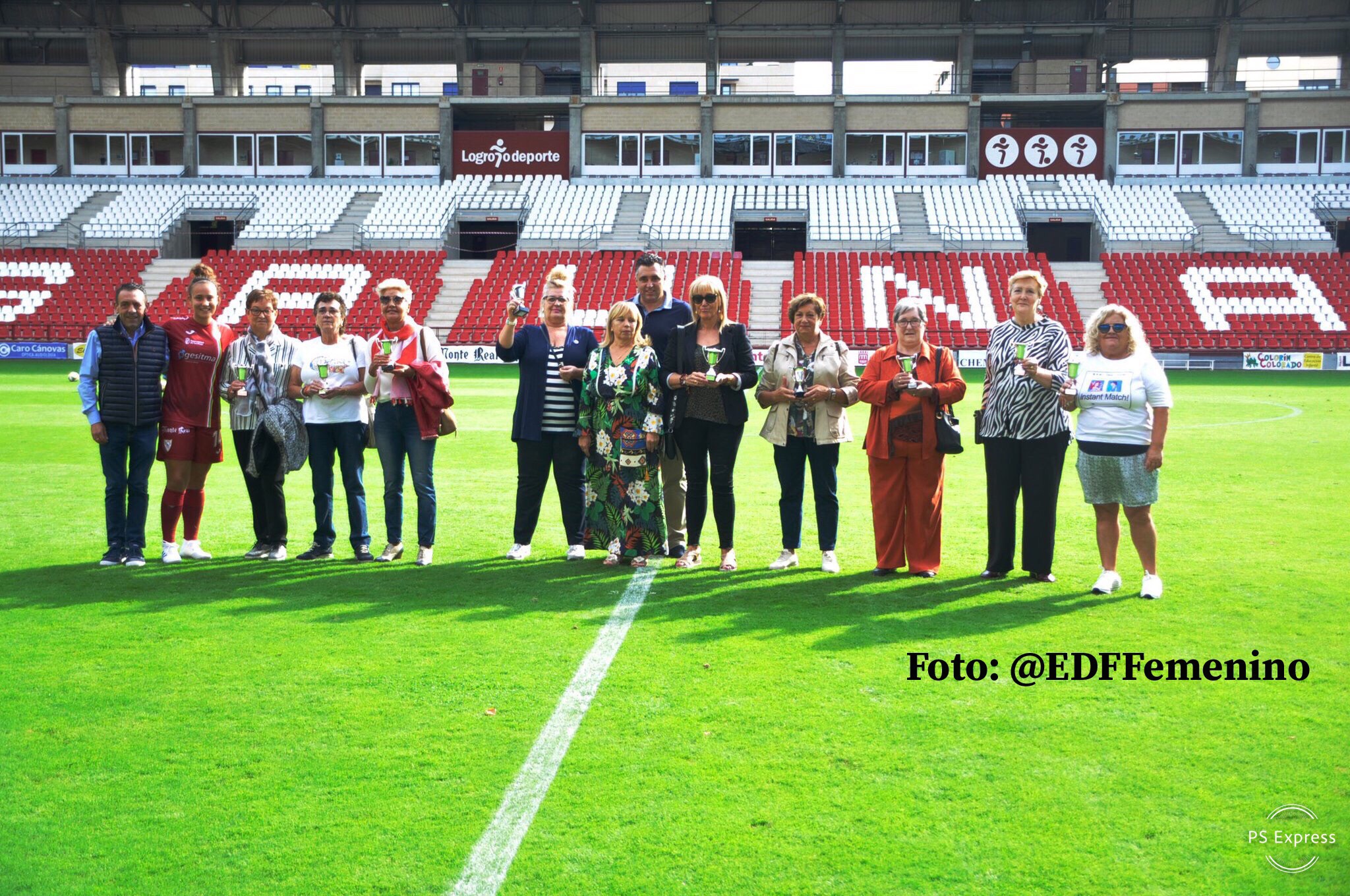 Antes del inicio del partido, Las Gaunas rindió un homenaje a las pioneras del fútbol femenino riojano, las mujeres que, sin federar, jugaron en los setenta en el equipo llamado Real Unión.