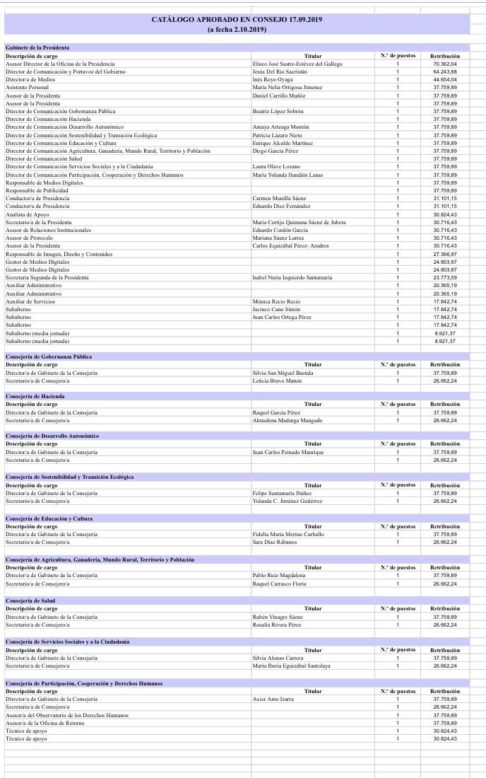 Si bien sí que está publicada esta relación de personal lo que todavía no ha sido publicado la relación de bienes de sus altos cargos.