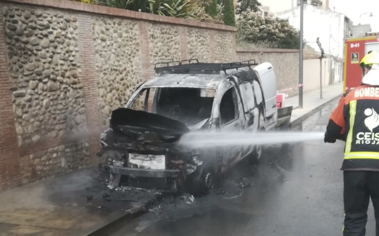 Un coche de Aqualia ha sufrido un aparatoso incendio dentro del núcleo urbano de Calahorra, en la calle Mediavilla