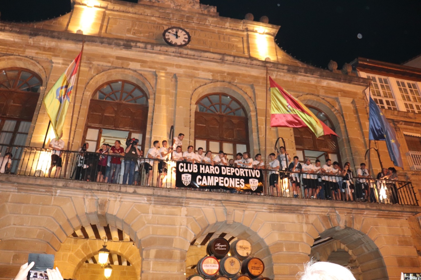 Tras una espectacular temporada en la que los jarreros se proclamaron campeones de liga con ocho puntos de diferencia sobre el segundo y catorce sobre el tercero, ayer el Haro Deportivo ponía el broche de oro a la temporada en la primera de las opciones que tuvo. Porque ser campeón es lo que tiene con esa doble oportunidad de ascender ganando en la ronda de campeones o hacerlo en segunda instancia superando las dos rondas siguientes.