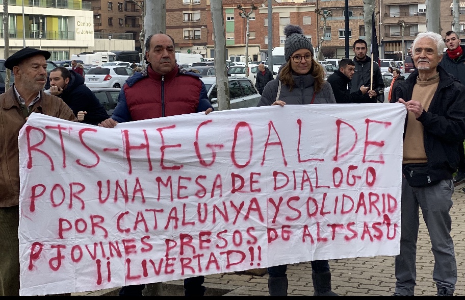 Desde el parking del Silo partió la manifestación de Hegoalde RTS. Once manifestantes comenzaban a recorrer la calle autorizada para esta manifestación. Un grupo se concentró en la salida para mostrar su oposición a los manifestantes que, desde el inicio, fueron increpados. Una manifestacion legal con los permisos oportunos frente a un conato de contramanifestación sin amparo ni legalidad alguna.