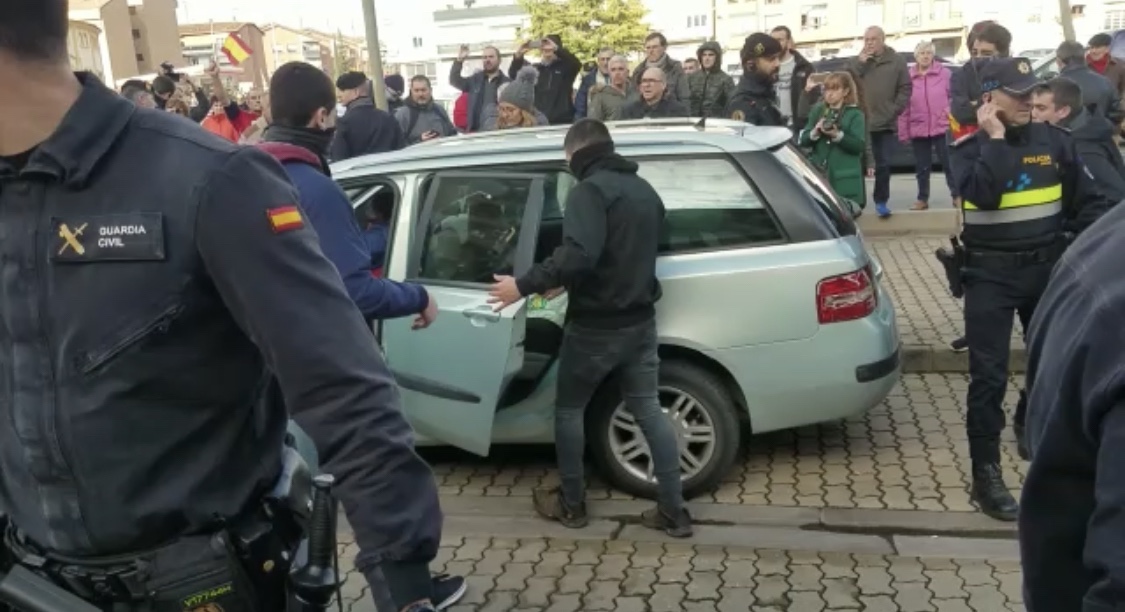 En el Cuartel de la Guardia Civil comenzó a crecer la tensión. Allí esperaban a la manifestación, portando banderas de España, un grupo que recibió a los manifestantes al grito de asesinos. Cánticos y vivas a España le siguieron. No era una elección cualquiera.