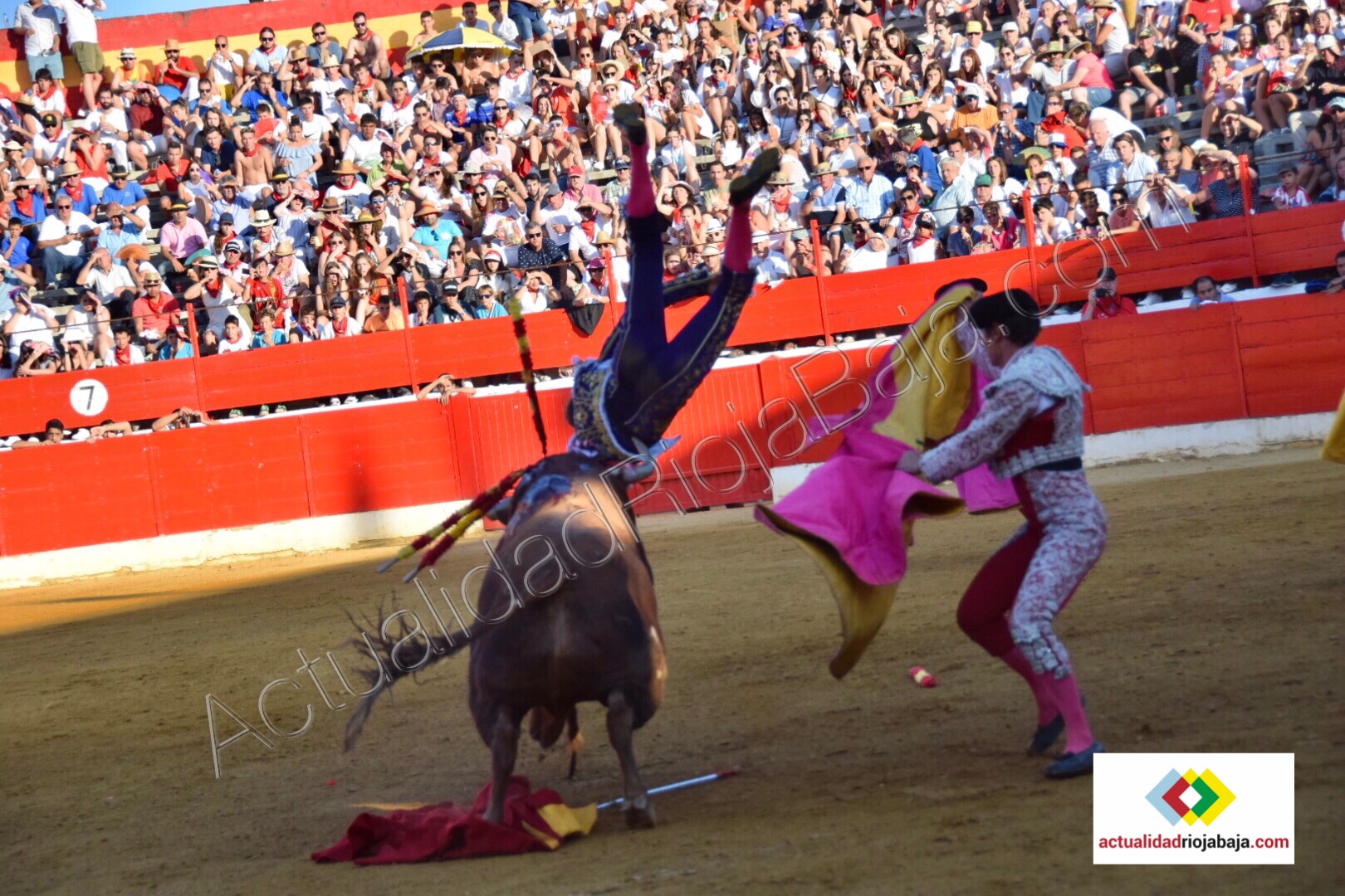 ‪David Galván ha sufrido un feo volteo por el cuarto toro de la tarde en Alfaro.