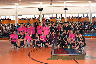 Ante un abarrotado pabellón, los alumnos de primero y segundo han desarrollado sendos bailes frente a sus compañeros de centro escolar. Porque las gradas han estado completamente abarrotadas de estudiantes y profesores (ya que se ha impedido el acceso a padres) que con gran dosis de humor han celebrado esta onomastica.