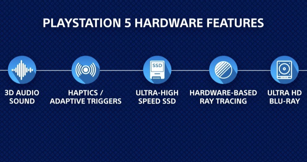 Además comentaron las características que ya se conocían como son el Sonido 3D Audio, nuevas funciones para el control, con nuevos gatillos adaptativos; almacenamiento SSD de alta velocidad para reducir al máximo los tiempos de carga; ray-Tracing (algoritmo para síntesis de imágenes tridimensionales) y unidad Blu-Ray Ultra HD, entre otras.