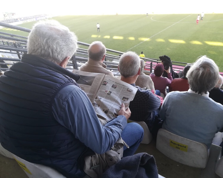 Y hubo charla con esos aficionados que viajan, esos que juegue donde juegue su equipo no fallan. Y hubo ocasiones : Víctor, minuto 5, su balón se va rozando el poste derecho; Lander Olaetxea, minuto 8, desde fuera del área, disparo desviado. Y hubo, como decia el niño del anuncio, un paaalooo Rubén Martínez, minuto 16. Y más ocasiona; otra vez Olaetxea por encima del larguero; Carles Salvador, de tiro cruzado, en el minuto 37; Víctor, la más clara, de cabeza en el minuto 59; Bobadilla y su remate inverosímil; otra vez Carles Salvador, por encima del larguero, y Marcos Andre, de cabeza, en el minuto 83. Y hubo un señor que leía el periódico; la Segunda B y este tipo de partidos no iban con él.