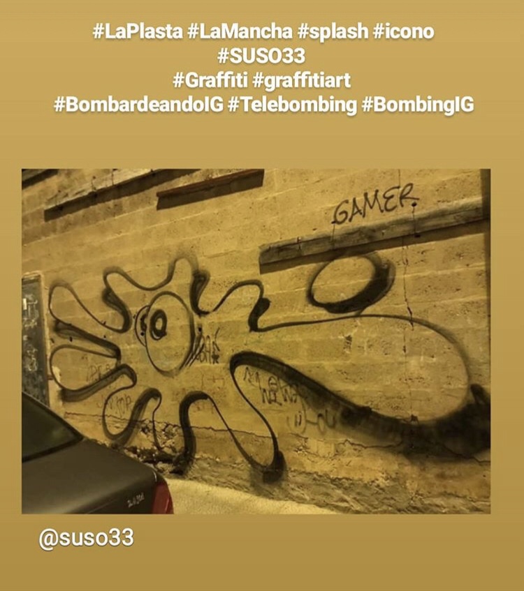 Actualidad Rioja Baja ya dio esta primicia en su momento que ahora se ha visto confirmada por el propio artista al incluir esta pintada en su «bombardeando plastas en instagram», coml ha denomido Suso33 esta recopilación.