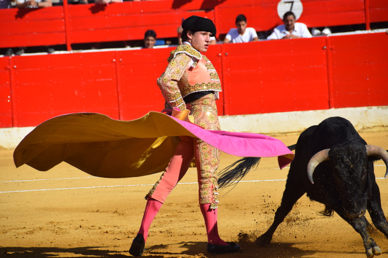 Fabio Jiménez se estrenaba, a sus 16 añitos (fiera), con dos novillos en la plaza de su localidad y ante sus vecinos, quienes le recibieron con una cerrada ovación, y no dejaron de alentarlo y llevarlo en volandas en cada muletazo. Era la estrella de la tarde y en Alfaro había muchas ganas de ver a su compatriota.