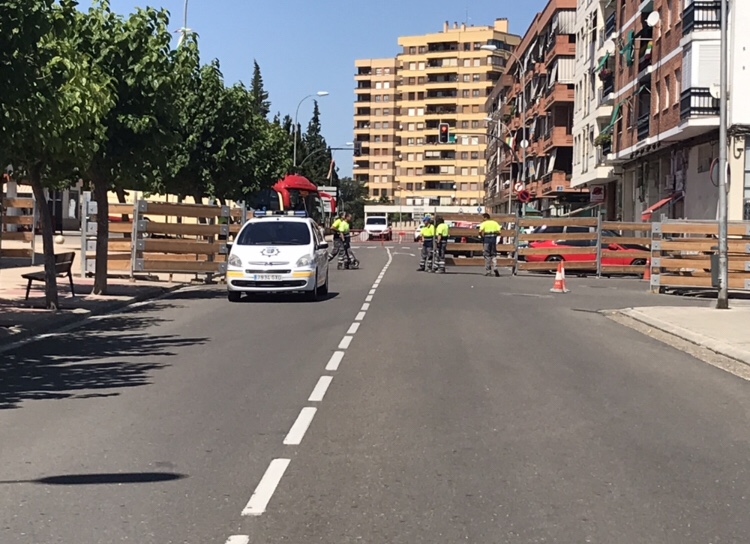 La calle Bebricio, entre General Iriarte y la Avenida Valvanera se encuentra cerrada en este momento a consecuencia de la colocación de los maderos de las fiestas de Calahorra.