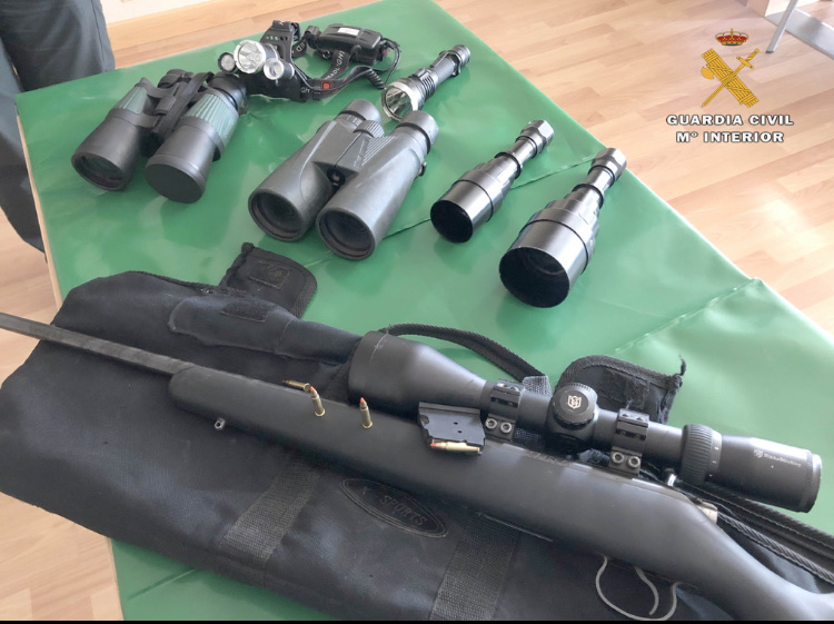 Tras intervenir el arma los agentes procedieron al registro del vehículo hallando en su interior munición, dos binoculares, dos linternas de largo alcance y dos linternas de cabeza, hechos que motivaron la tramitación de las correspondientes denuncias contra los implicados, por infracción muy grave al artículo 81.1 de la Ley de Caza de La Rioja: “cazar o transportar armas u otros medios de caza listos para su uso de noche auxiliándose con los focos de un vehículo a motor o con cualquier otro dispositivo que emita luz artificial o facilite la visión nocturna”.