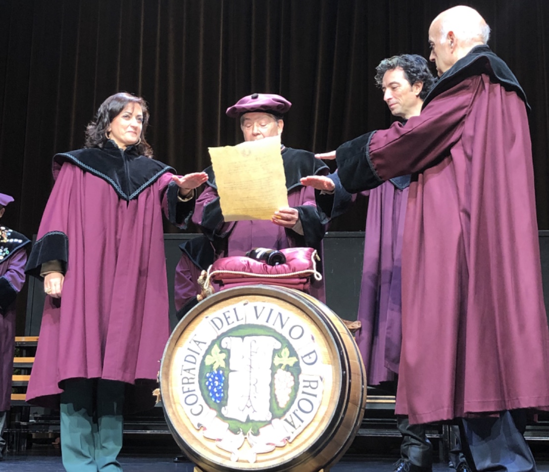 Andrés Pascual y la Compañía Lírica de Aficionados, CLA Pepe Izaga y la presidenta del gobierno de La Rioja han sido investidos cofrades de mérito por la Cofradía del Vino de Rioja.
