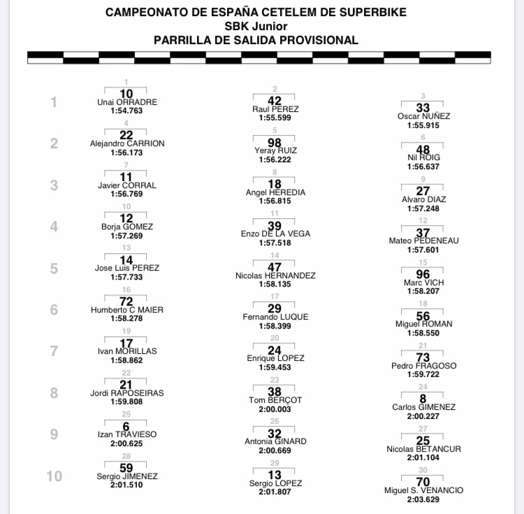 Raúl Pérez, quién saldrá desde su derecha, y Óscar Núñez, con el tercer mejor tiempo, completan la primera línea de salida
