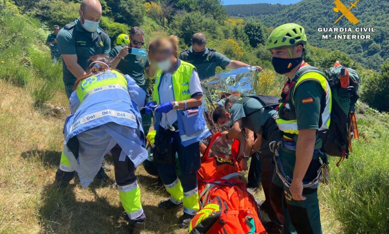 Una vez estabilizado el senderista por personal médico, agentes de la Guardia Civil procedieron a su evacuación en una camilla de percha hasta el punto de encuentro con el helicóptero.